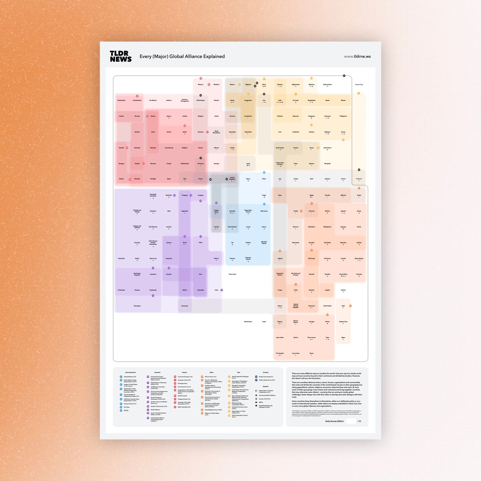 This poster breaks down every major alliance around the world, demonstrating which countries get on with each other and which regions agree on what.